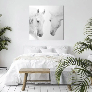 - The painting features a subtle portrait of two white horses in a minimalist, monochromatic style. It's an ideal decoration for both classic and modern interiors, bringing harmony and elegance.