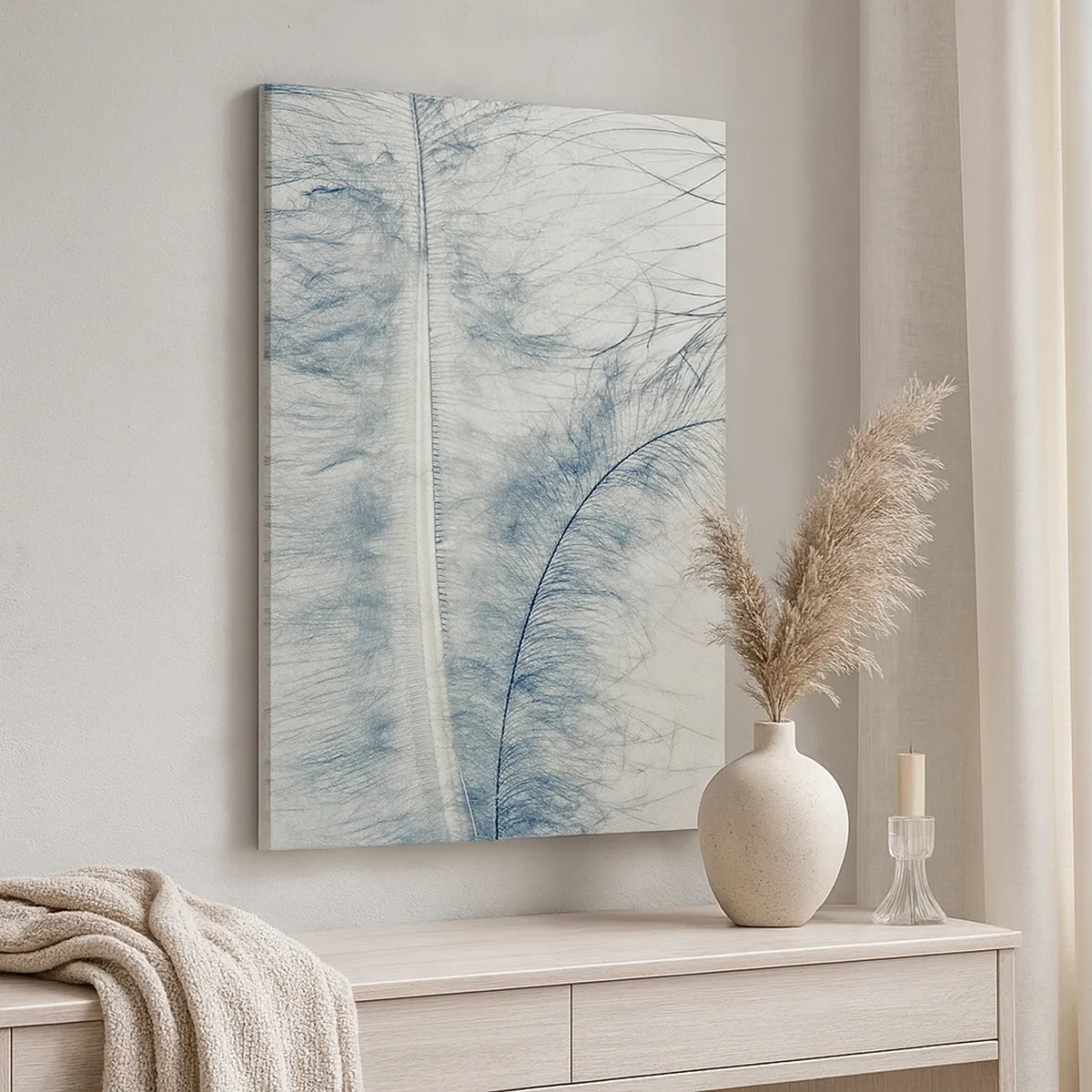 The canvas is stretched over the frame. The sides and edges of the picture are printed to form a continuation of the image. The painting is ready to hang on the wall. Each product comes with a hanger attached to the frame and a mounting kit (screw + wall plug).