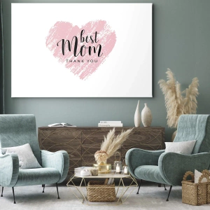Canvas picture - Pink heart with the words "Best Mom Thank You" on a white background - 70x50cm - Always the Right Moment - Modern wall decoration for the living room and bedroom ARTTOR