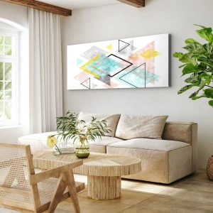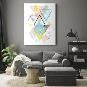 Canvas art "Geometric Play" is an explosion of modern design and creativity. It depicts colorful geometric patterns on a white background, creating a harmonious and subtle composition. The variety of shapes and shades, such as blue, yellow, and pastel pink accents, introduces energy and originality to the interior.