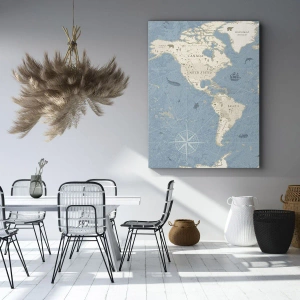 This composition fits perfectly into a variety of interiors, from living rooms to offices to bedrooms, introducing elegance and harmony. The neutral colors make the painting suitable for both classic and modern interior designs. Additionally, the map's details emphasize its functional and educational nature, making it not only a decoration but also a source of travel inspiration.
