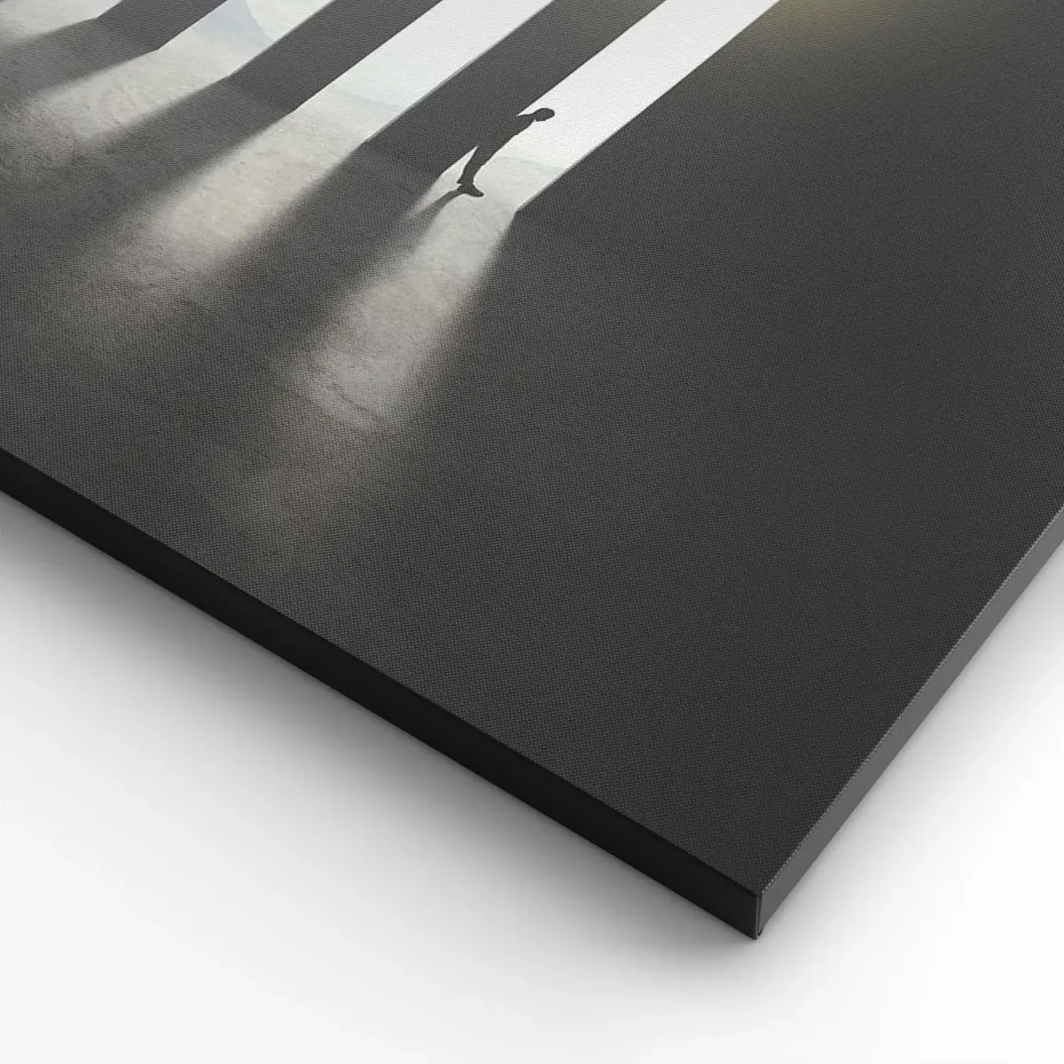 The canvas art print "Success – impression" is a modern decoration that subtly presents the idea of progress and inspiration. The central element is luminous passages in the shape of growing rectangles, stretching against a dark background. This combination of light and shadow creates a minimalist, yet profound composition.