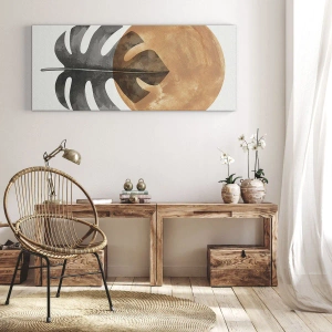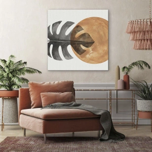 The "Always Sunny" painting is a unique work of art that combines natural motifs and modern aesthetics. The delicate monstera leaf is juxtaposed with a geometric golden circle on a light background, creating a subtle and harmonious composition. This painting perfectly fits the aesthetic of minimalist and contemporary interiors, introducing an element of naturalness and elegance.