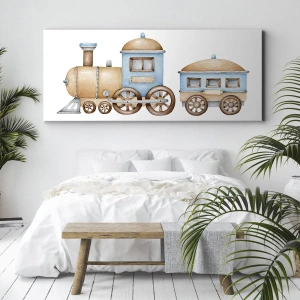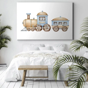 The painting "Standing at the station..." is a charming decoration that brings warmth and subtlety to the interior. The drawing of a pastel train on a white background combines simplicity and artistic expression, creating the perfect decoration for a child's room or a space where we want to add a touch of gentleness and coziness.