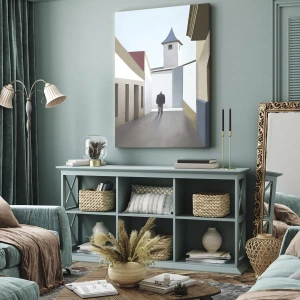 The canvas is stretched over the frame. The sides and edges of the picture are printed to form a continuation of the image. The painting is ready to hang on the wall. Each product comes with a hanger attached to the frame and a mounting kit (screw + wall plug).