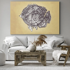 The canvas print "From the Ocean of Ornaments" is a unique decorative element, depicting a fish in a drawing style with rich patterns. Subtle details and an original design make the picture a perfect fit for a variety of interiors.