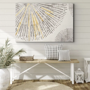 The canvas picture "The Beauty of the Ray" is an artistic composition depicting an abstract ray-shaped pattern in shades of gold and beige. Its subtle design and harmonious composition give interiors a unique elegance and tranquility.