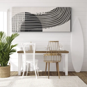 "Back and Forth" is an extremely modern canvas painting with a minimalist design that attracts attention with its abstract pattern. The composition consists of delicate lines and geometric shapes that together create a harmonious and dynamic whole. The motif, decorated in a monochromatic color scheme of gray, white, and black, fits perfectly into the aesthetics of modern spaces.