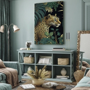 - canvas print depicting a leopard among tropical leaves against a black background. This striking motif is perfect for modern interiors, adding an exotic touch.