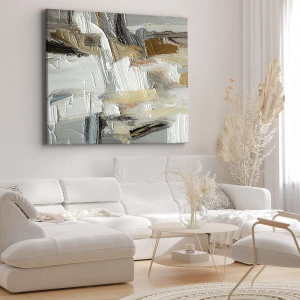 - The painting features a textural abstraction in earthy tones and white, creating a subtle and modern decorative accent. Perfect for lovers of contemporary art.