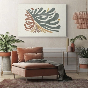 "Multicolored Leaf" is a unique canvas painting that combines subtle aesthetics with modern design. The composition depicts an abstract leaf in earthy colors, placed on a light background, creating a harmonious and peaceful whole.