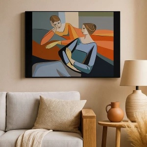 Canvas picture - Abstract illustration of two women in the cubist style - 70x50cm - Time for Confession - Modern wall decoration for the living room and bedroom ARTTOR