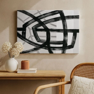 The canvas is stretched over the frame. The sides and edges of the picture are printed to form a continuation of the image. The painting is ready to hang on the wall. Each product comes with a hanger attached to the frame and a mounting kit (screw + wall plug).