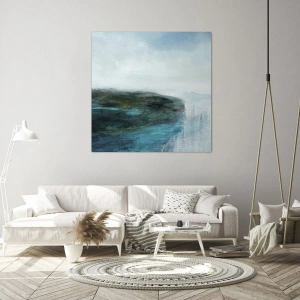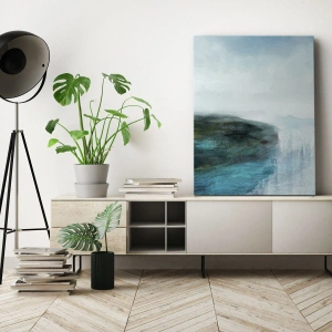 - This 70x50 cm canvas print depicts an abstract landscape in shades of turquoise and gray. Perfect for modern interiors, it brings harmony and artistic expression.