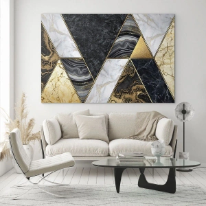 - A painting featuring a geometric motif of triangles with a marble texture and gold accents. The composition combines elegance, modernity, and refined style, bringing a sense of luxury and harmony to the interior.