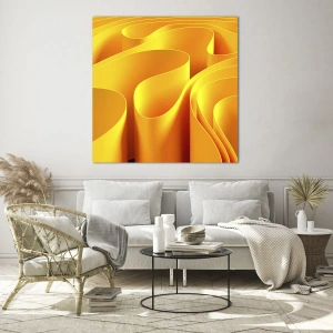 Glass picture - Abstract waves in shades of gold and orange - 70x50cm - Like Waves of the Sun - Modern wall decoration for the living room and bedroom ARTTOR