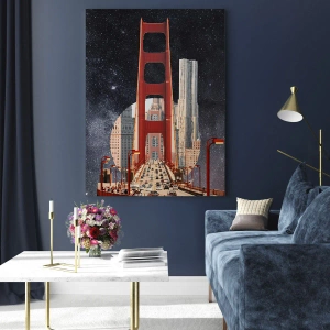 The use of contrast between the realistic representation of the bridge and skyscrapers and the abstract background of outer space creates a surreal vision that stimulates the imagination. It is a visual journey beyond the boundaries of reality and a symbolic message about the search for one's own "center." This painting balances between graphic design and photography, reality and dream. This form of communication allows the viewer to interpret it in their own way – is it a vision of the future, an alternative world, or simply a dream of escaping the hustle and bustle of the city?