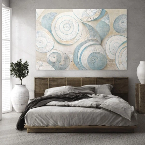 - The painting depicts numerous spiral-shaped shells in shades of blue and beige. Inspired by nature, the composition brings peace and harmony to the interior, delighting with its texture and subtle colors.