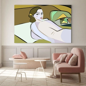 A living room decoration that, through a woman, abstraction, a portrait style, and earthy colors, creates a coherent and atmospheric graphic story.
