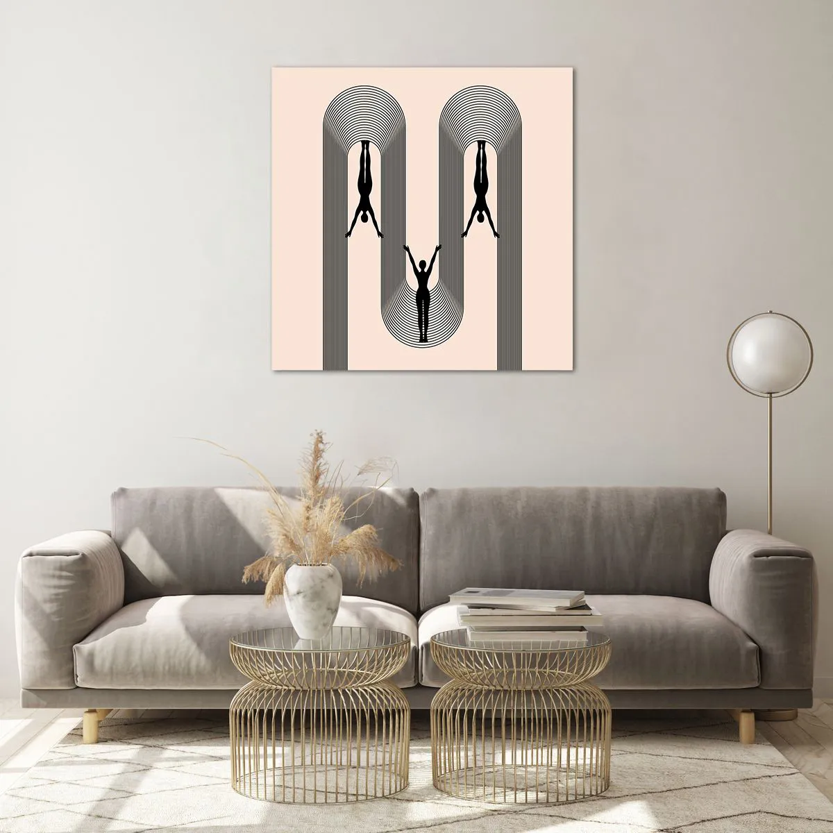 The glass picture is made from 4mm thick glass. The edges of the glass have a matte trapezoid cut. The picture is safe to use and ready to hang - it comes with metal hangers attached to the back of the picture and foam pads to ensure even distancing of the picture from the wall.