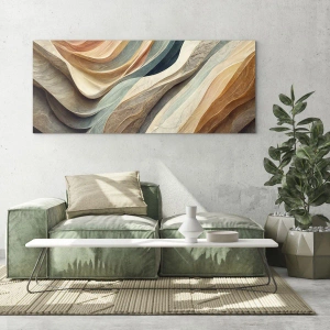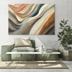 - The painting depicts layered, undulating forms in earthy tones, reminiscent of geological rock structures. Flowing lines and subtle tonal transitions create a calm and organic composition. It's perfect for interiors inspired by nature.