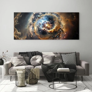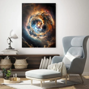 This extraordinary living room painting attracts attention both with its subject matter and the intense depiction of the dynamic processes occurring in space. Space symbolizes infinity, development, and the mystery of existence, which makes this motif particularly inspiring. Every detail of the painting enhances the effect of the flash of light, which draws the eye and has an almost meditative effect.