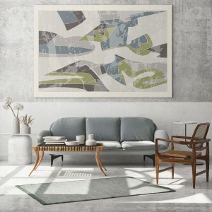 - An abstract composition composed of geometric shapes in shades of green, blue, and gray. A modern and stylish motif perfect for a living room, bedroom, or office.