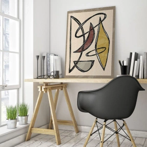 The graphic elements evoke a system of equal forces – verticals and horizontals – coexisting in tension, yet at the same time in a perfectly balanced whole. Their shapes – oval, rounded, colliding with each other – build the dynamics and energy of the painting. This style is perfect for modern and minimalist spaces.
