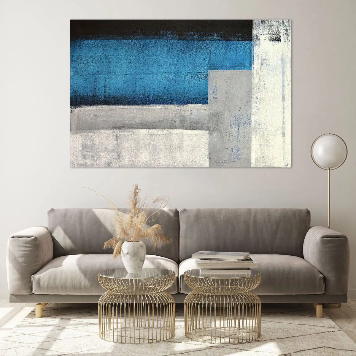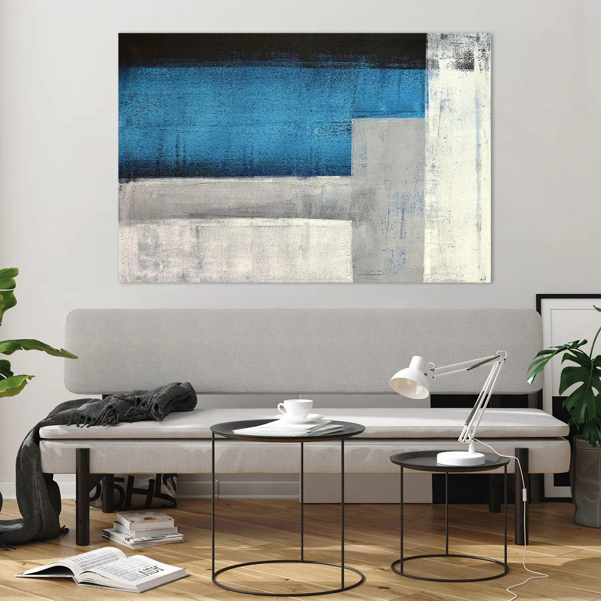 Glass picture - Poetic Composition of Blue and Grey - 120x80 cm
