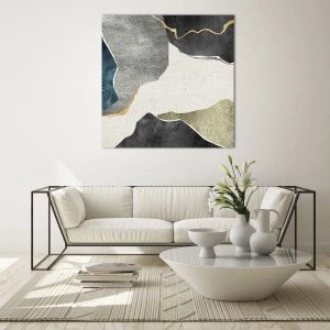 "Mosaic Composition with Gold Thread" will work perfectly in a living room, bedroom, office, or commercial space such as a design studio, hotel, or wellness area. It is a print that harmonizes with its surroundings while remaining a noticeable element of the design.