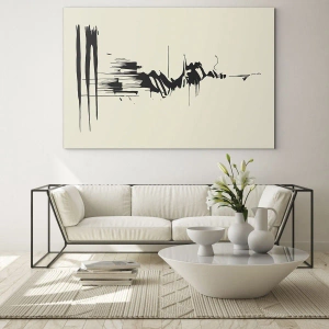 Glass picture - Black dynamic lines and spots on a light background in an abstract style. - 70x50cm - Hasty Abstract - Modern wall decoration for the living room and bedroom ARTTOR