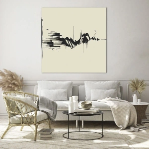 The work was created on glass in a horizontal orientation, measuring 70x50 cm. The glass surface enhances the contrast between the background and the black graphic, giving it an elegant finish and depth. This ARTTOR product is characterized by durability, aesthetics, and a modern approach to artistic wall decoration.