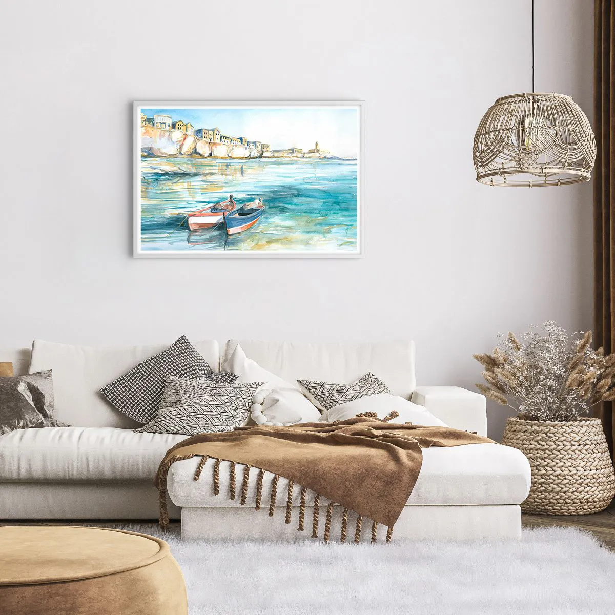 Poster in white frmae - Landscape in Azure - 91x61 cm