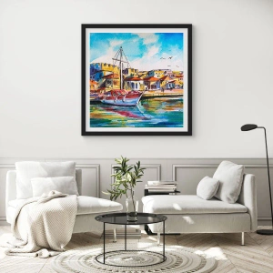 Thanks to its dynamic composition and intense colors, the poster will be a perfect decorative element in a living room, bedroom, or office. Its Mediterranean style evokes memories of summer travels and introduces an atmosphere of relaxation.