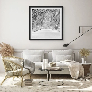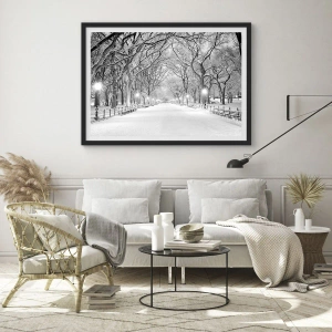 Poster in black frame - A winter avenue of trees covered with snow in the park - 50x70cm - Four Seasons: Winter - Modern wall decoration for the living room and bedroom ARTTOR
