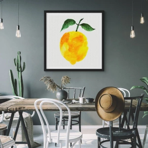 - This poster features an artistic watercolor painting of a lemon with green leaves against a light background. The minimalist composition and warm colors lend a fresh, natural charm to the interior.