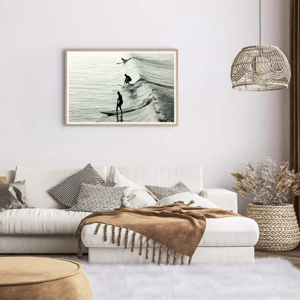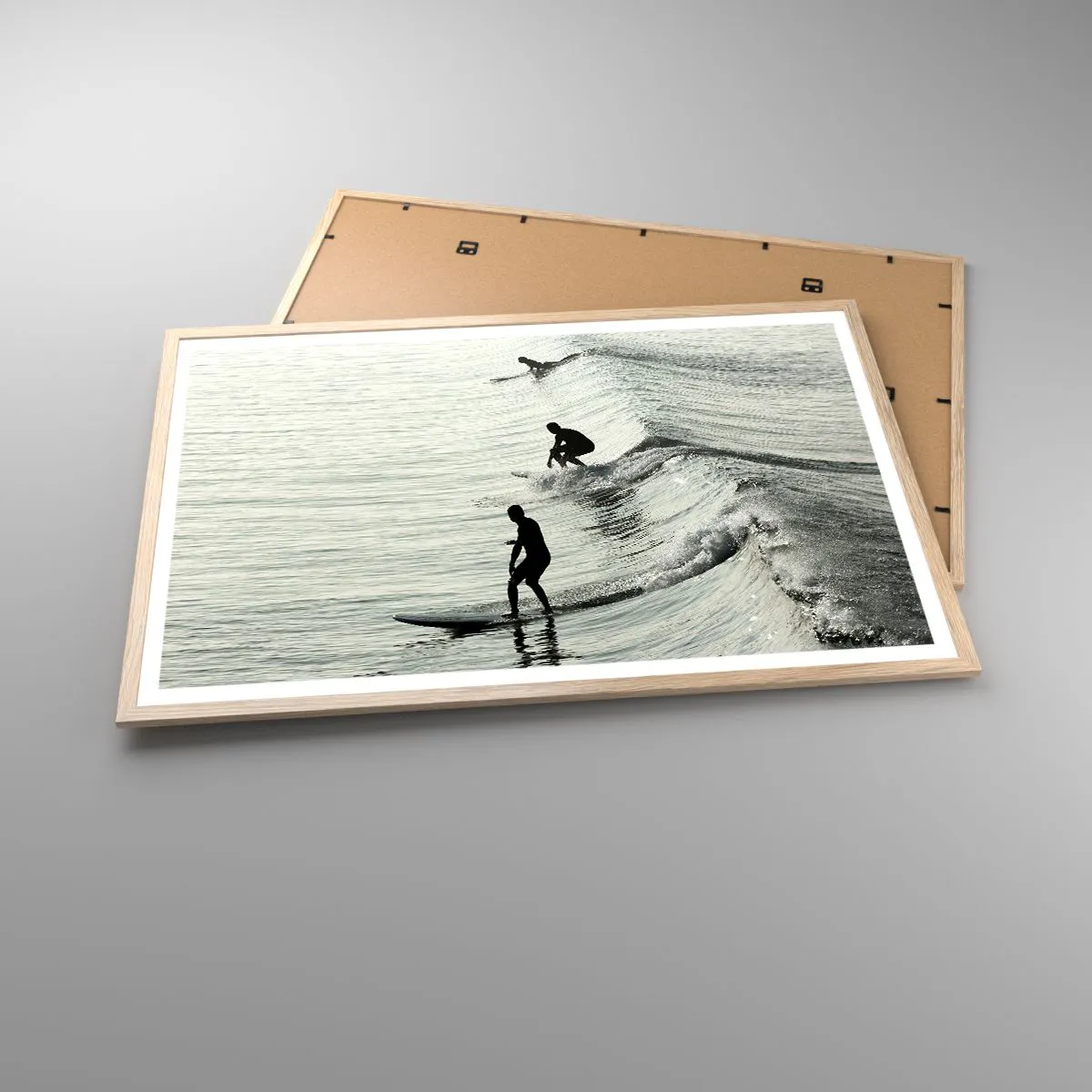 Poster in light oak frame - Meeting the Wave - 91x61 cm