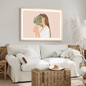 Poster in light oak frame - Mysterious Portrait with a Fan - 61x91 cm