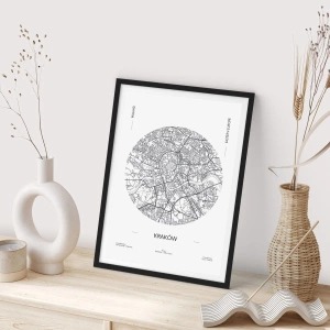 - This poster features a detailed map of Krakow in a black-and-white graphic enclosed within a circle. Its minimalist style makes it an ideal addition to modern interiors, offices, and living rooms. Crafted with high-quality materials, it comes framed in...