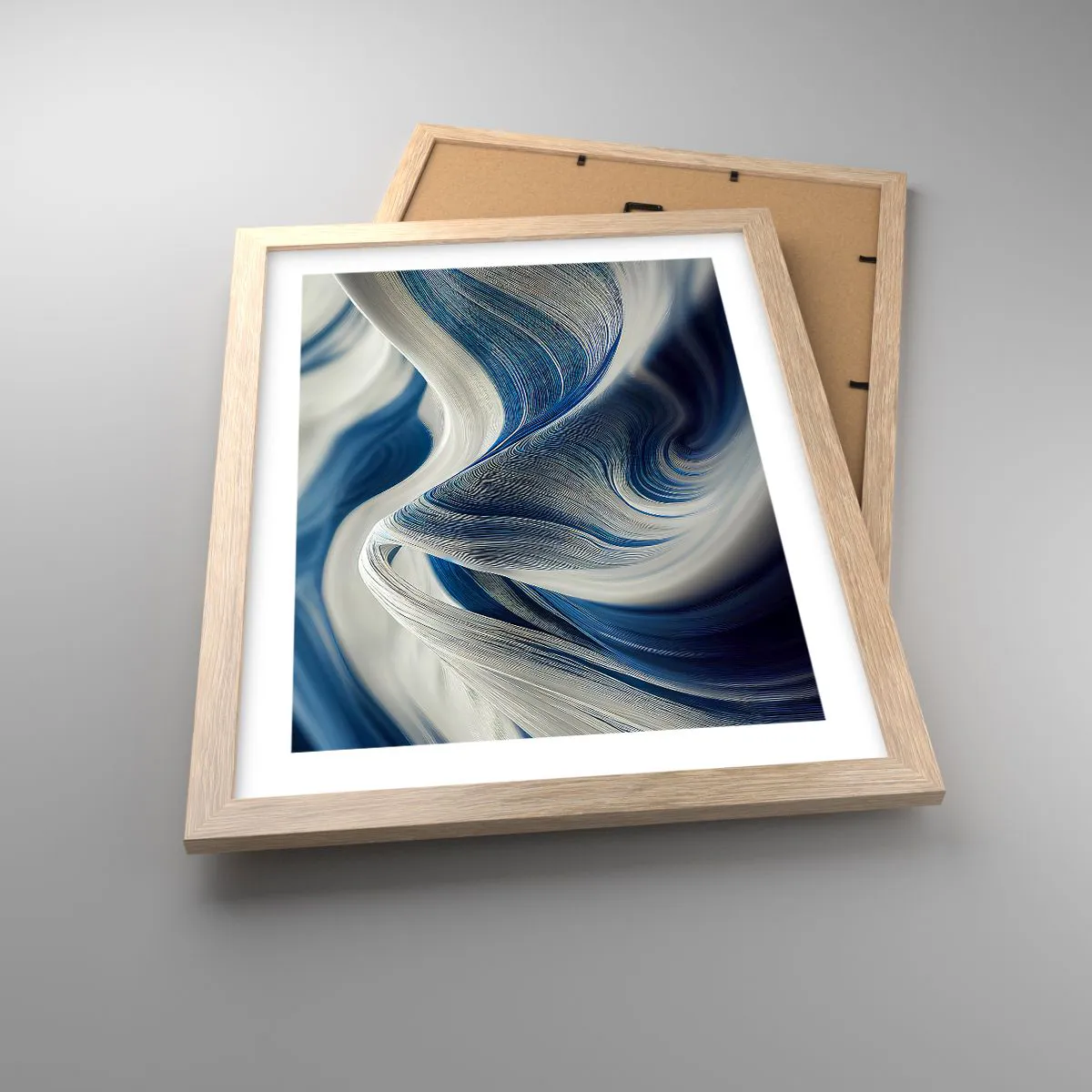 Poster in light oak frame - Fluidity of Blue and White - 30x40 cm