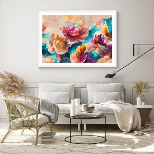 Poster in white frmae - Colourful Splendour of a Bouquet - 100x70 cm