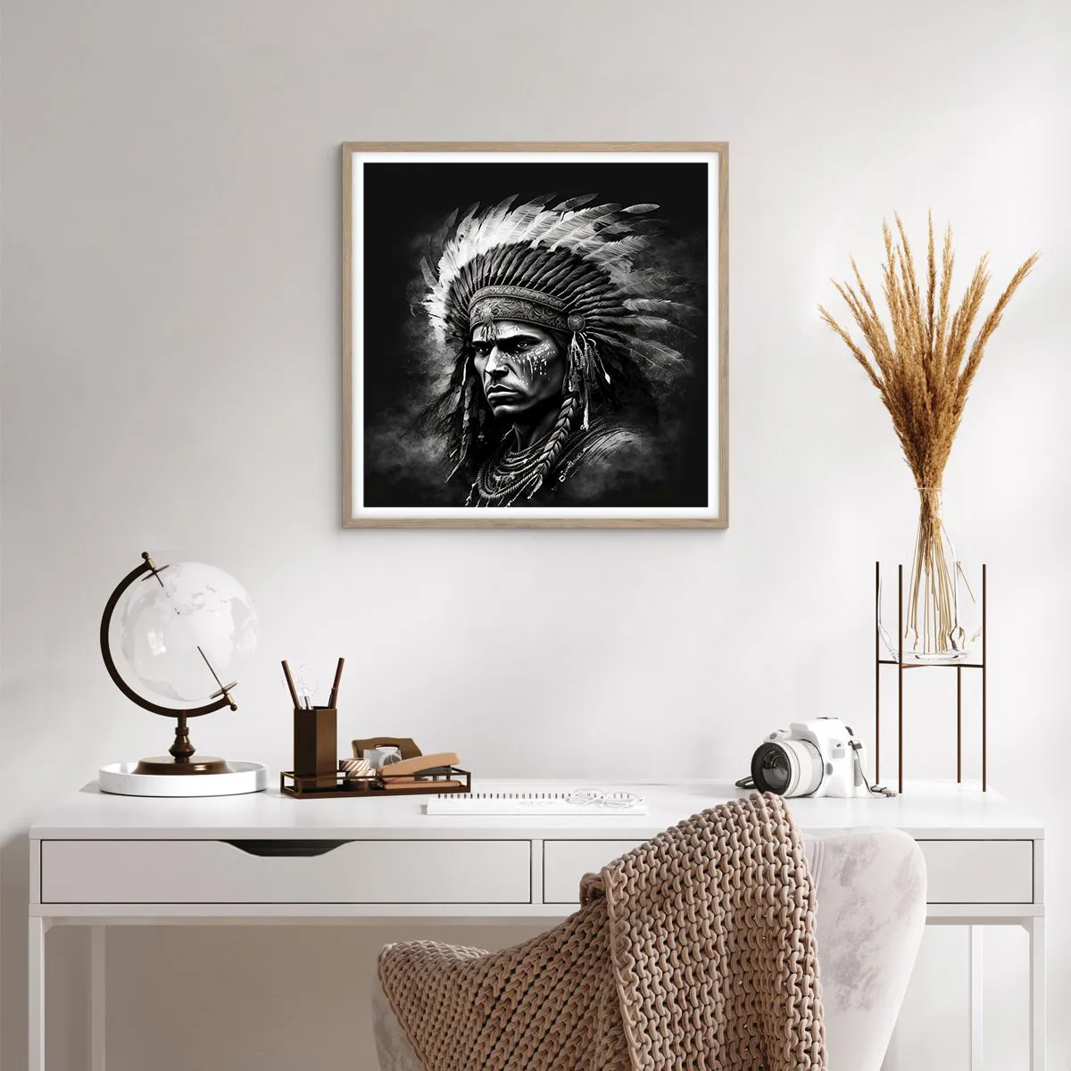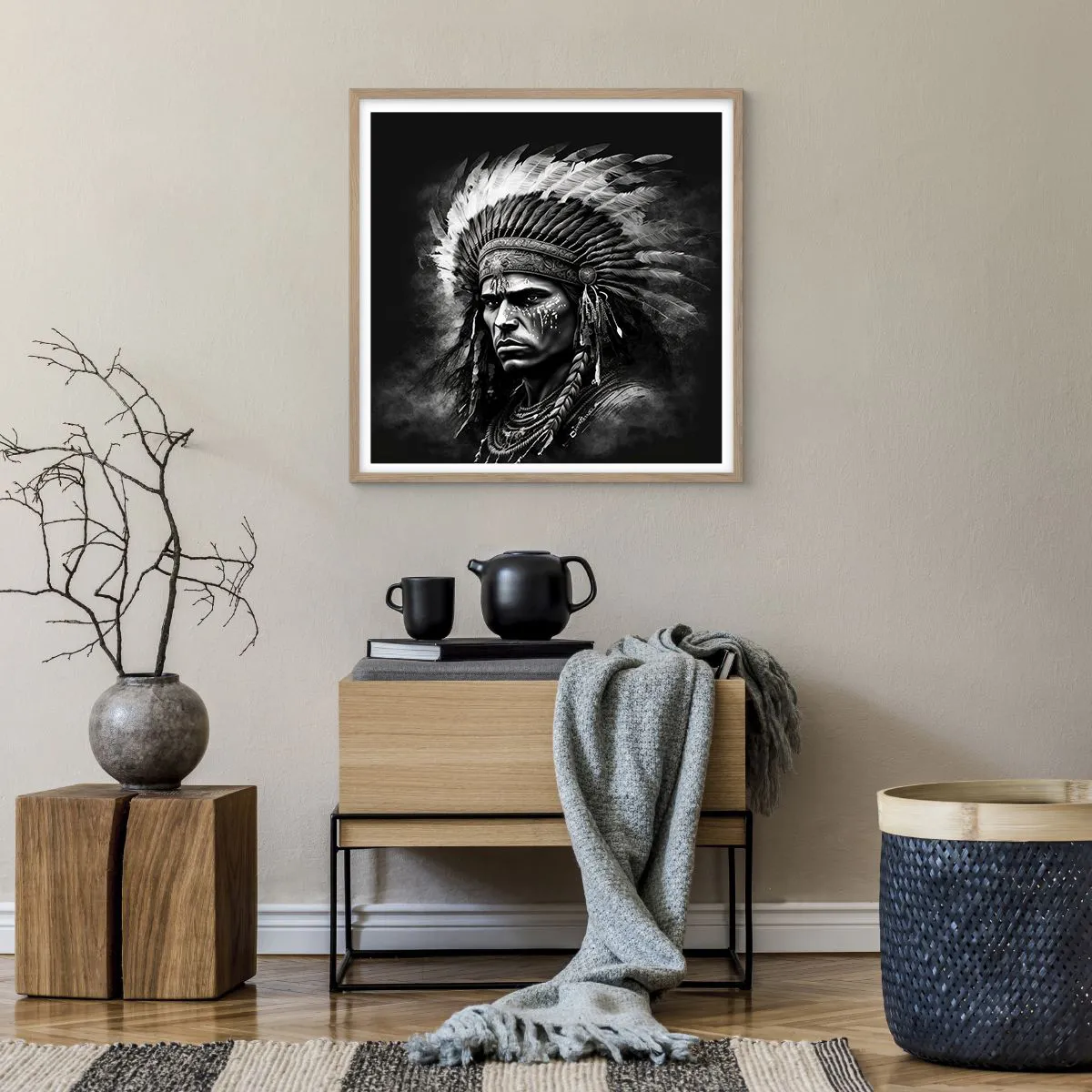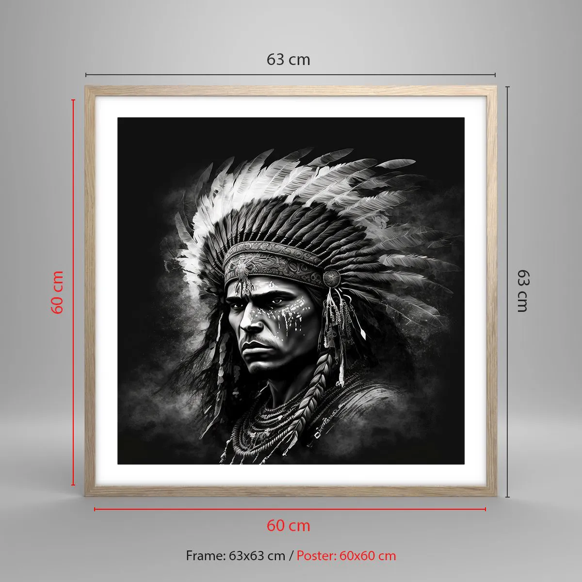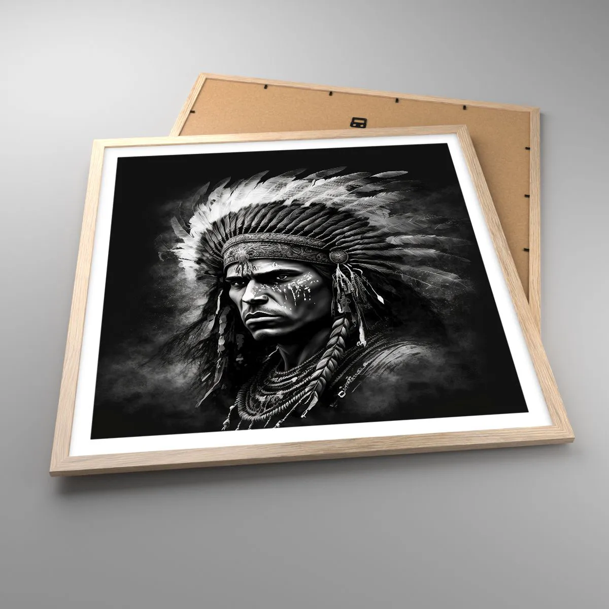 Poster in light oak frame - Chief and Warrior - 60x60 cm