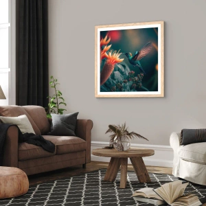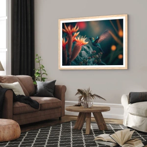 • Bird, Exotic, Flower, Botany, Flowers, Animals, For the office, For the study, For the dining room, For the hall, For the living room, For the bedroom, Orange, Green, Vertical