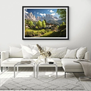 Poster in black frame - A mountain village at the foot of majestic peaks - 50x70cm - Alpine Idyll - Modern wall decoration for the living room and bedroom ARTTOR