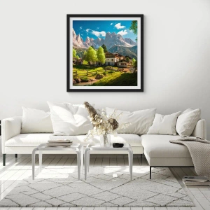 Printed on high-quality material, the poster is characterized by excellent color reproduction and durability. It is available in a 50x70 cm format, and the set also includes a black frame, which highlights the unique character of the composition and gives it an elegant touch. It's an excellent choice for those who appreciate the beauty of nature and traditional architecture embedded in the landscape.