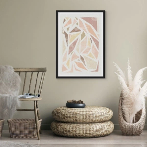 The pattern used on the poster resembles fragments of glass or mosaic. Thanks to the effect of structural texture, the composition gains depth and expressiveness. This work of art will complement interiors dominated by natural materials, wood, and subdued accessories.