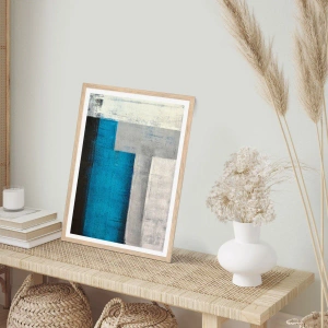 Poster in light oak frame - Poetic Composition of Blue and Grey - 70x50 cm