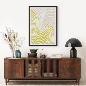 Poster in black frame - An abstract composition of wavy lines in shades of beige and yellow. - 50x70cm - Composition with a Gentle Curve - Modern wall decoration for the living room and bedroom ARTTOR