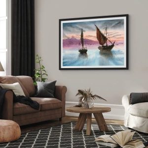- This poster depicts a sailboat on calm water in the light of sunset. Subtle colors and a watercolor effect give it a nostalgic and relaxing feel.