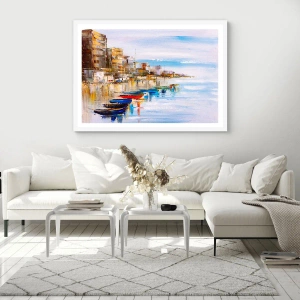 Poster in white frmae - Multicolour Town Marina - 50x40 cm